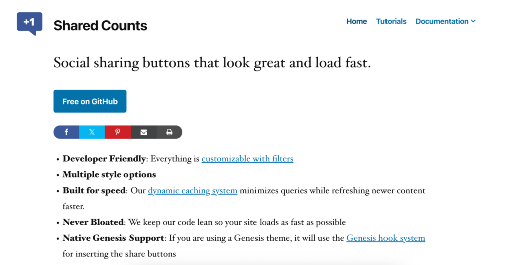 Shared Counts is a lightweight social sharing plugin designed for WordPress users who value speed and performance. It adds clean, minimal share buttons that load quickly and won’t slow down your site. Because of its focus on efficiency, it’s an excellent choice when you want fast share buttons without unnecessary bloat.