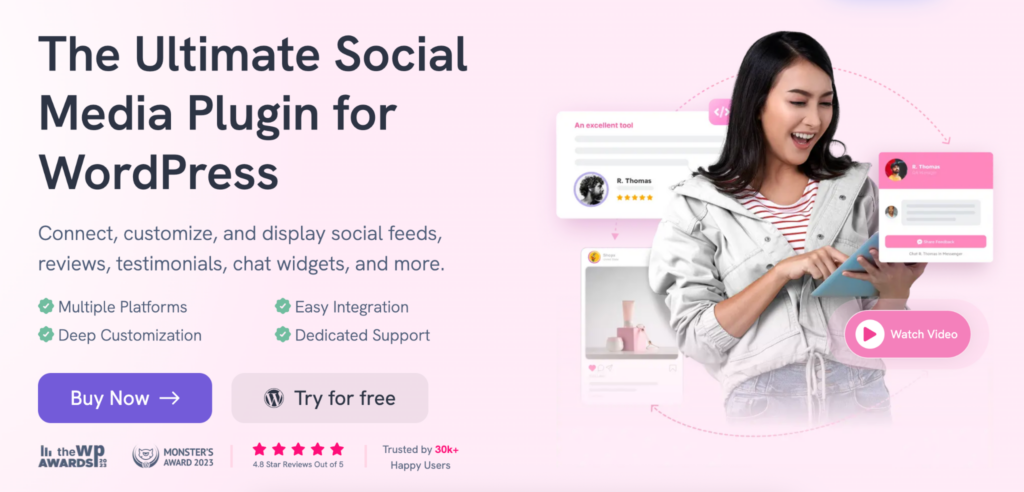 WP Social Ninja works best for small businesses, e-commerce sites, and agencies that want to display social feeds, reviews, and chat widgets in one dashboard.