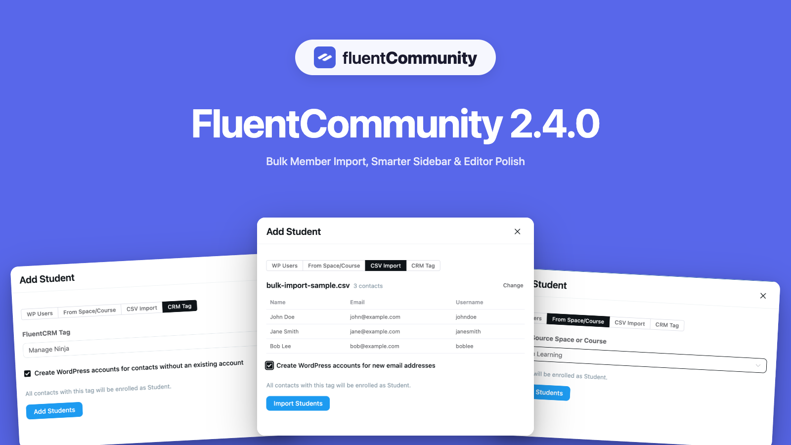 FluentCommunity 2.4.0: Bulk Member Import, Group Messaging & Smarter Sidebar