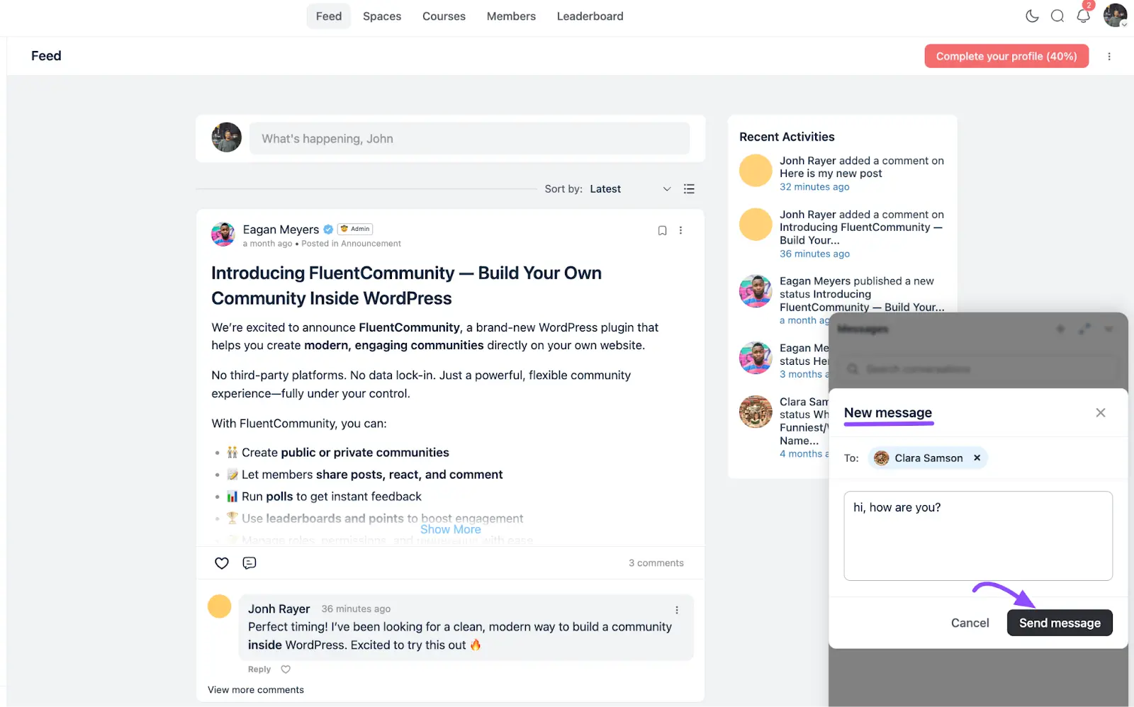 The FluentCommunity Chat is a real-time chat feature, designed to help members connect and interact easily. Follow this guide to enable and use the chat feature.