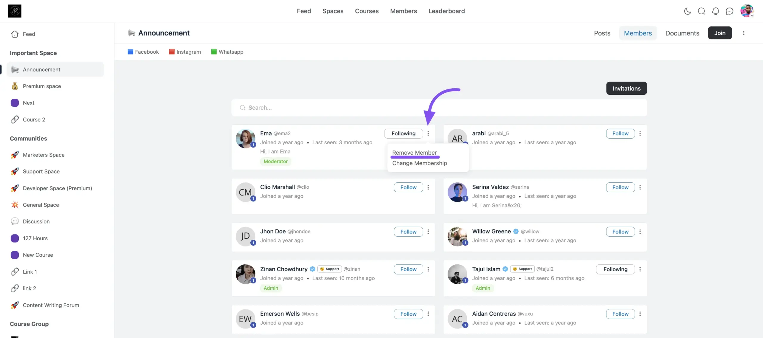 Removing Members from Spaces and Courses #